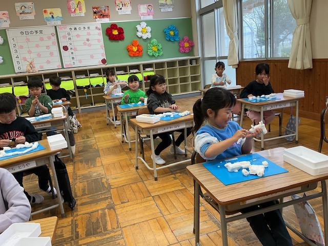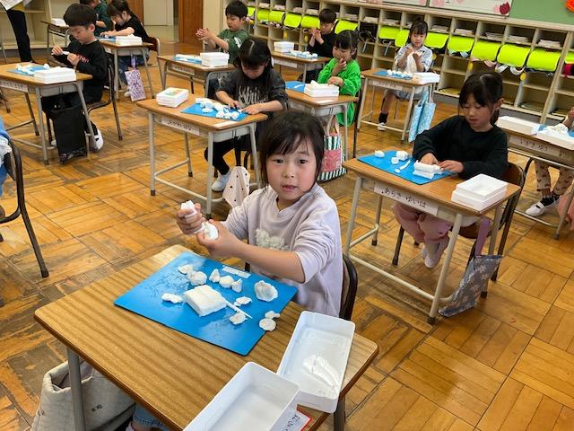 子どもたちは、それぞれ思い思いの形づくりに夢中。