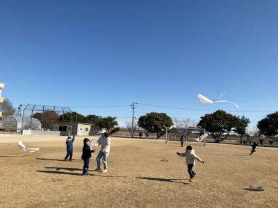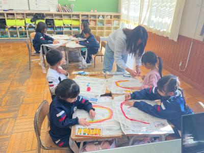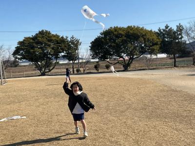 自分で作ったたこに、お気に入りの絵をかいて、準備はばっちり。