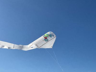 真っ青な空に、白いたこがすーっと舞い上がり、