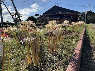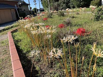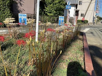 正門前の三角畑に彼岸花が咲きました。