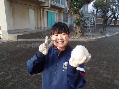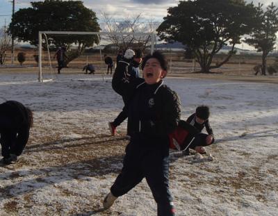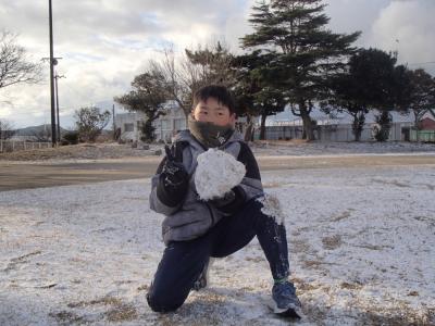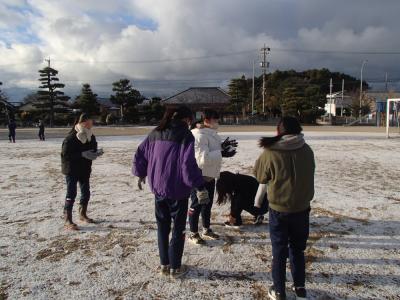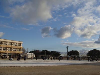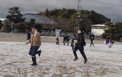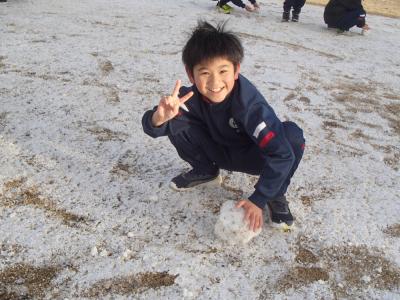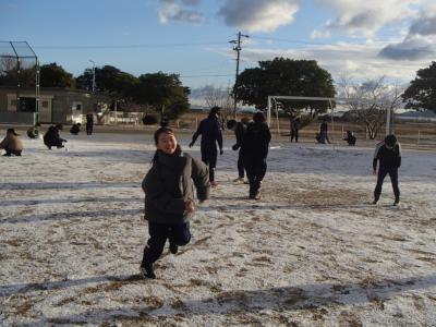 グラウンドにも、うっすらと雪が積もっていました。