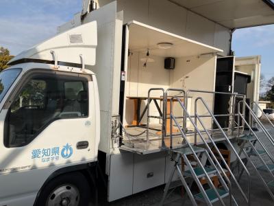 大地震の揺れを体験できる、愛知県の防災体験車です。