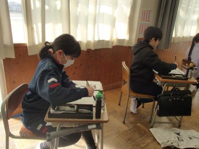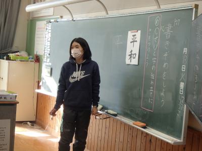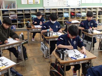 4年生の書写の授業では、書き初めに取り組んでいました。