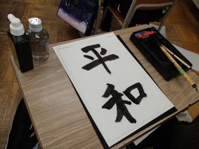 今日、子どもたちが筆に込めた言葉は、「平和」です。