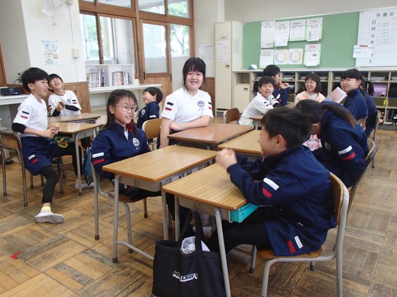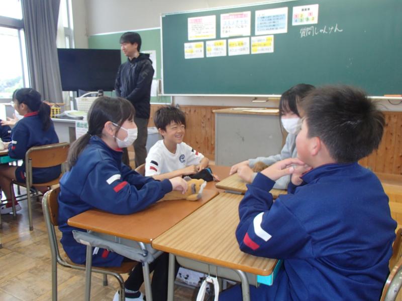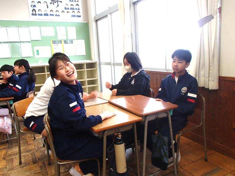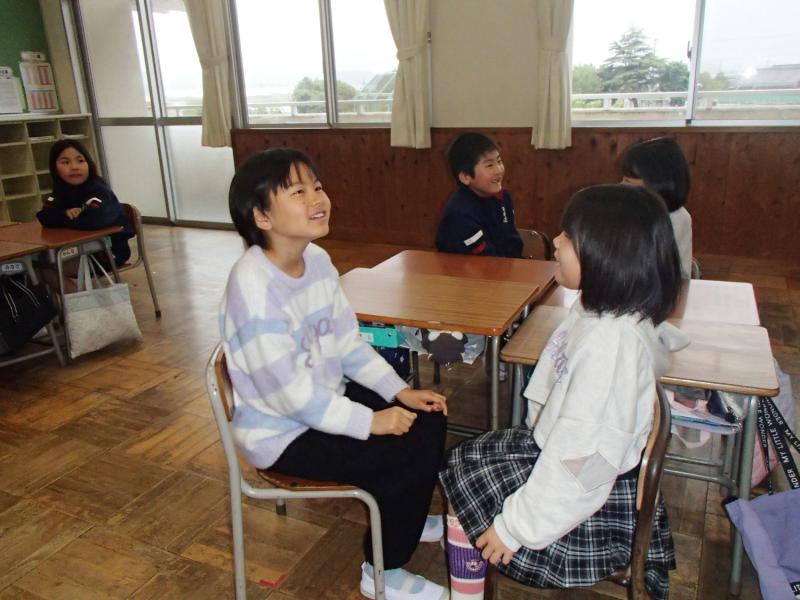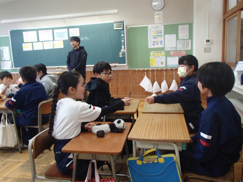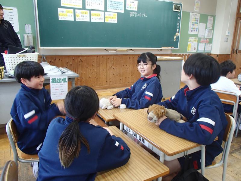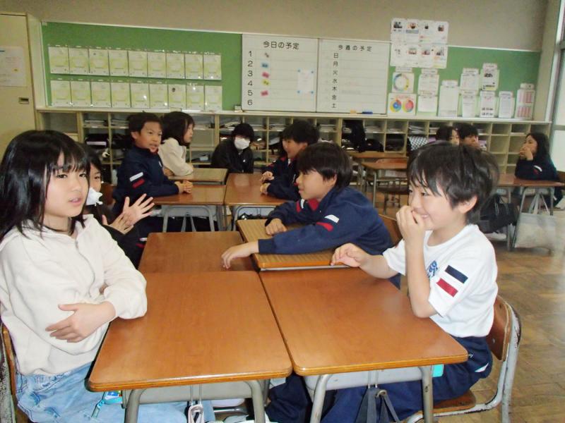 「好きな給食は?」「100万円あったら何を買う?」など、あちらこちらで会話がはずみます。