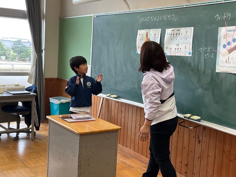 やりたい子が前に出て、自分の好きなリズムを選びます。