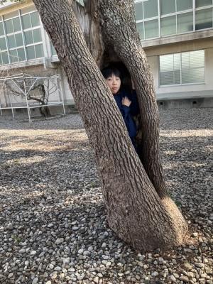 なんと、木の幹のくぼみにすっぽり(笑)