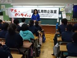防止教室」を開きました。ライオンズクラブの方たちに来ていただき,「薬物は,若い皆さんがもっている〝大いなる可能性〟や〝将来への夢〟までも奪ってしまう。」といった話をしていただきました。子どもたちにとっては,あまり身近な問題とはいえませんが,お話を聞くことで,子どものうちから知識として薬物の危険を知っておくことや,自分自身でしっかりと考え,自己管理ができるようにしていくことが大切だというこを学びました。