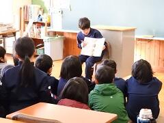 の取り組みの一つとして,「読み聞かせ」を行っています。高学年は今まで通り〝手のひらの会〟の方たちに来ていただいていますが,低学年は今回初めて図書委員会の子どもたちでやることにしました。今回が初めての試みで,図書委員の子どもたちも緊張気味でした。