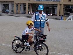 7月10日火曜日、大変暑い天候の中、運動場とランチルームで1・2年生自転車教室を行いました。自転車教室には福江交番所長の宮下さんをはじめ、日頃子どもたちの交通安全を見守ってくださっている、青パトさんや交通ボランティアのみなさんにも来ていただき、安全な乗り方、発進の仕方、横断の仕方などを学びました。終了後には,「天野自転車」さんに自転車点検をしていただきました。