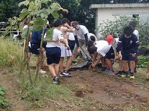 夏休みの自由工作のですばらしい作品の中から、児童からお借りし、来客玄関受付に飾りました。「生け花」はペットボトルを活用して作られています。「蓮」は紙で作られています。学校にお立ち寄りの際は、ぜひご覧ください。