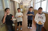朝の集いの後、ホットドックづくりを行いました。パンに具を挟み、アルミホイルで包み、牛乳パックに入れて火をつけたら出来上がり。とても簡単で美味しくできますので、ぜひご家庭でも試してみてください。