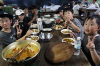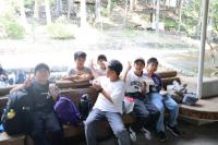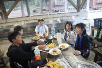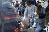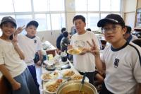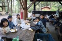 県民の森に到着!お弁当を食べ、入村式を行い、カレー作りです。学校での練習の成果を発揮し、火起こしも材料の準備もスムーズにでき、美味しいカレーライスをいただいました。