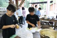 カレー係は、鍋にカレーの具材を切って入れていきました。包丁をあまり使ったことが無いようで、恐る恐るといった感じの子が多かったです。また、玉ねぎにやられて涙を流している子もいました。