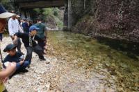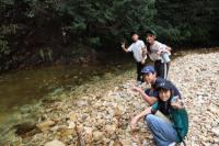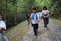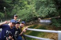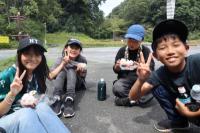 荷物の片付け・掃除が終わったらハイキングへ出発。風穴の涼しい風や冷たい川の水で涼むことができました。