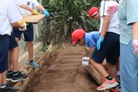 3,4年生が渥美農業高校へ行き、サツマイモの収穫体験をさせてもらいました。