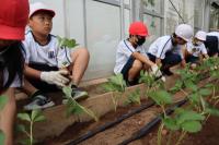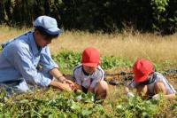 地域の方に来ていただき、教えてもらいながらイチゴの苗植えをしました。