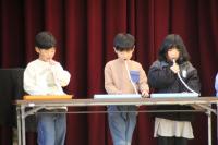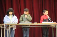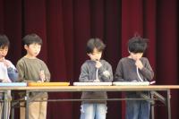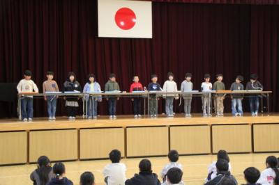 1年生が、全校の前できらきら星を演奏しました。