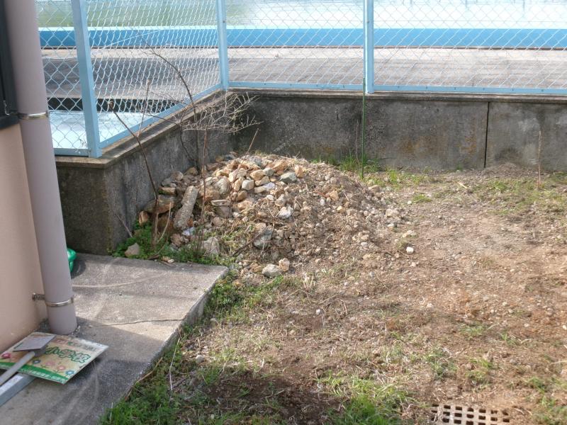 トカゲランドに積み上げられた石は今までの3倍の量になりました。色々片付けていると、カタツムリやゲジゲジ、ヤスデ、アマガエルなどがいました。石の山が大きくなり、枯れ葉や幹や枝が太陽の光で温められ、生き物が動き出し、集まってきています。石の山や枯れ葉や枝の山のことをビオトープといいます。4月からは、たくさんの生き物が農具倉庫の周りに集まってきます。小さな昆虫が集まり、それを食べる大きな昆虫が集まり、それを食べるトカゲやカエルが集まり、それを食べるヘビや鳥が集まります。ヘビが来るのは嫌な人がいるかもしれませんが、ビオトープでは、増えすぎるということはありません。ヘビを食べにくるワシやタカも来るからです。ビオトープを作ると、生き物の食物連鎖が大きく複雑になり、たくさんの種類の生き物の楽園となります。何度も来て観察するといろいろな発見がありますよ。今日は、アマガエルが鳴いていました。もうすぐ産卵の時期です。周りに植えたクヌギやコナラの木ももうすぐ芽吹きそうです。
