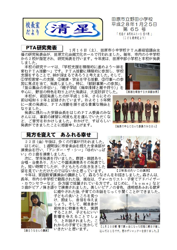 校長だより 清星第65号