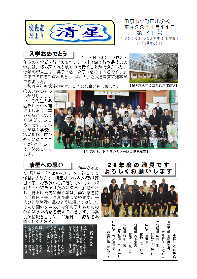 校長だより 清星第71号