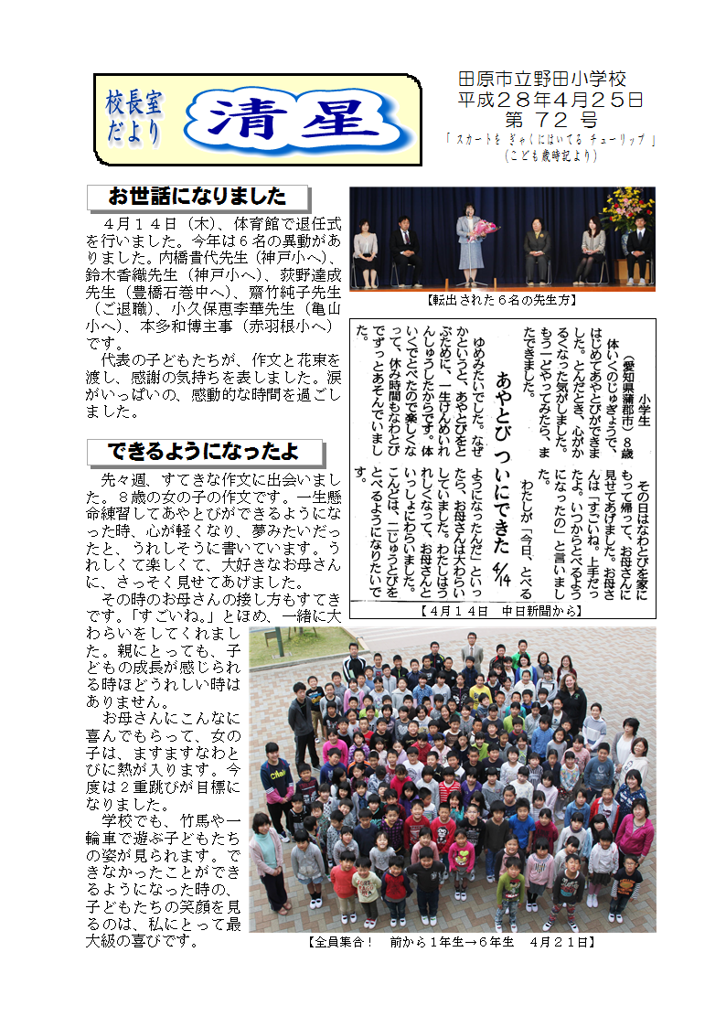 校長だより 清星第72号