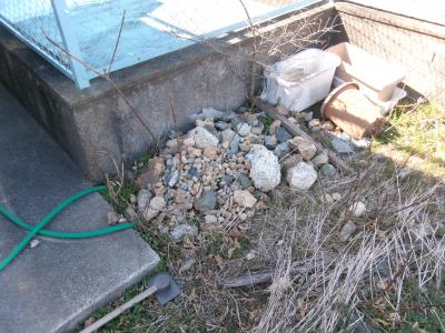 トカゲランドは、石を積み上げた乾いたビオトープです。