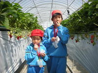 今日は前日の雨もあがり、絶好の遠足日和です。大草小学校では、春の遠足を縦割り班活動の出発となる行事として位置づけています。上級生が下級生の面倒を見ながら、班ごとにイチゴ狩りやゲームをして楽しく活動します。1年生の子たちも、お兄さんやお姉さんがいっしょなので安心です。班をリードする6年生が、とても頼もしく見えました。今日1日で、子どもたちの心のつながりができたようです。