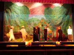 10月16日(木)に、劇団風の子中部のみなさんによる「ぱらりっとせ」の観劇会が行われました。大草保育園からも3名参観しました。「ぱらりっとせ」とは、「はないちもんめ」という意味だそうです。昔の遊びでは、お手玉、なわとび、竹馬、風車、和傘などが紹介されました。2本の大縄の中を軽々と二重とびで跳んだり、蛇の目傘での紙風船まわしをしたりと、どれもアッと驚く演技に、子どもたちから自然に大きな歓声や拍手が沸き起こりました。「はなさかこぞう」の昔話では、三味線や竹笛を入れた弾き語り、最後に蛇の目傘の花が咲きました。ハラハラドキドキの連続で、楽しい時間を過ごすことができました。
