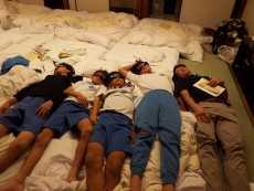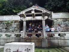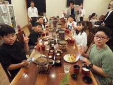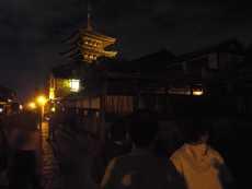 そして、いざ京都へ。清水坂で買い物をして、旅館に到着すると夕食タイム。その後、旅館の方の案内で八坂の塔周辺を散策。たくさん歩いたり、走ったりしましたが、子どもたちはみんな元気。大草小学校のよい子たちは、ガイドさんや旅館の方の話がしっかり聞けて、反応もよいので、説明する方たちも喜んでいました。