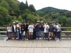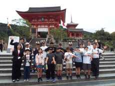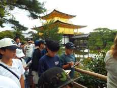 修学旅行2日目は、6時30分に清水寺の参拝に出かけました。朝は、比較的空いていてスムーズに見学することができました。清水の舞台(本堂)に立ったり、音羽の滝の水を飲んだりすることができました。旅館に戻り、朝食を食べると旅館を出発。車窓から二条城などを見学し、金閣寺(正式名称:鹿苑寺)に到着。金閣寺の最も大きな特徴は、やはり黄金に輝く「舎利殿(金閣)」と、その周囲の美しい庭園です。海外からの観光客も非常に多くいました。この日は、見学メモをとる子どもが増えてきました。金閣寺の次は東映太秦映画村へ。東映太秦映画村は映画のテーマパークで、時代劇のオープンセットを見学できるだけでなく、忍者や侍、特撮ヒーローなど、東映ならではのエンターテイメントが体験できるのが大きな魅力です。入場するといきなり俳優さんに刀で斬られている人もいました。子どもたちは、お化け屋敷やエヴァンゲリオン京都基地、忍者ショーを楽しむことができました。映画村を出発すると大草市民館へ。みんな元気に帰ってくることができました。保護者の皆様、送迎ありがとうございました。