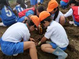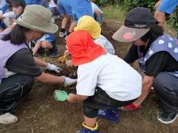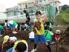 10月17日(金)に、いもほり集会が行われました。今年も猛暑が続き、さつまいもがしっかりと育っているか心配しましたが、想像以上の大収穫でした。掘ったいもは、11月5日(水)ごろに石焼きいもにして食べる予定です。お楽しみに。