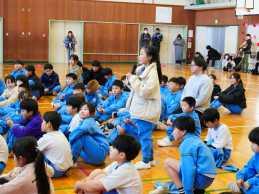 2月12日(木)に、新1年生の体験入学が行われました。初めに、新1年生にコミュニティ会長さんからヘルメットを贈呈されました。6年間事故に遭うことなく無事に登下校をしてほしいです。次に、5年生と体育館に移動して一緒に遊びました。この日のために、いろいろと準備をしてくれた5年生の力を発揮するところです。1つ目は宝探し(赤いシールを2つ見つける)を行いました。最初は、緊張気味の新1年生でしたが、時間が経つにつれ笑顔や会話が見られるようになってきました。2つ目はジェスチャーゲームでした。お題に合わせてジェスチャーを行い、あてるゲームです。話がとても上手に聞くことができる新1年生。4月からが楽しみです。