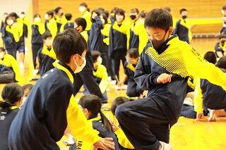 その後は学級対抗で王様ドッヂと障害物リレーを行いました。クラスごとに円陣を組んだり、士気を高めたりして、非常に盛り上がりました。