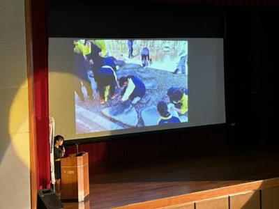 講演会を通し、生徒たちは地球環境問題について学んでいるところです。