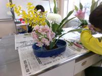 昨日の午後,I組全体で生け花を行いました。花は入学式の時にステージ上に飾られていたもので,一度の使用で廃棄してしまうのはもったいないので,再利用しました。