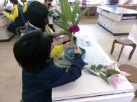 I組で生け花を行いました。