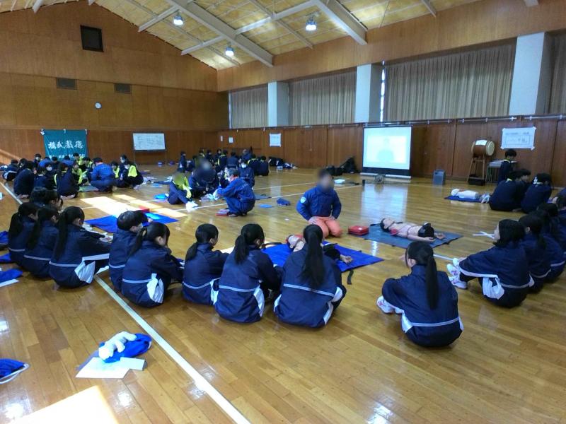 田原市消防署の方々にお越しいただき、救命救急法(2年生)を学びました。道具を用いて、心肺蘇生法やAEDの使用方法を習得することができました。
