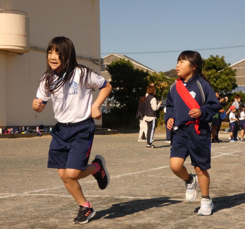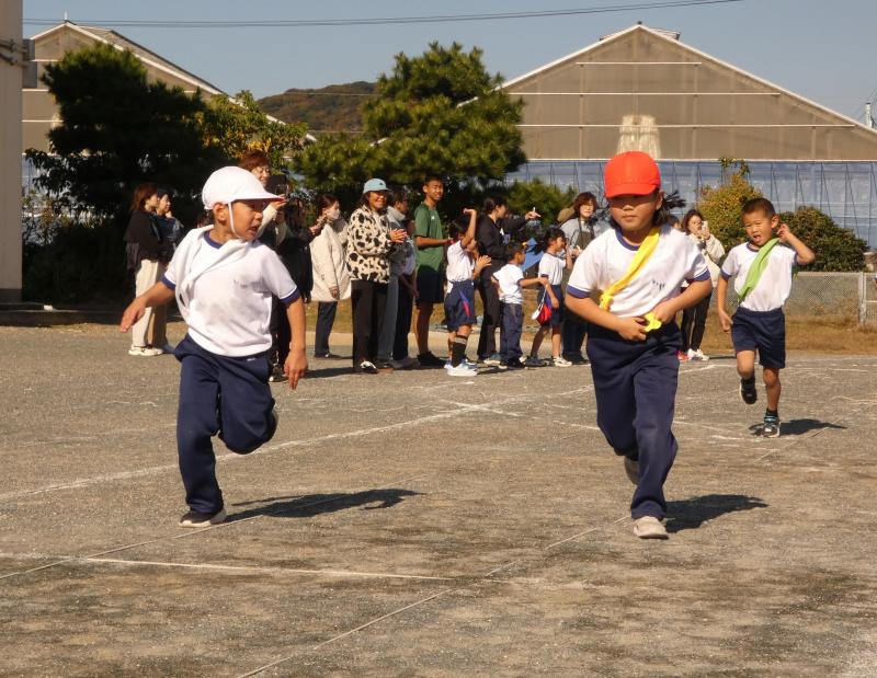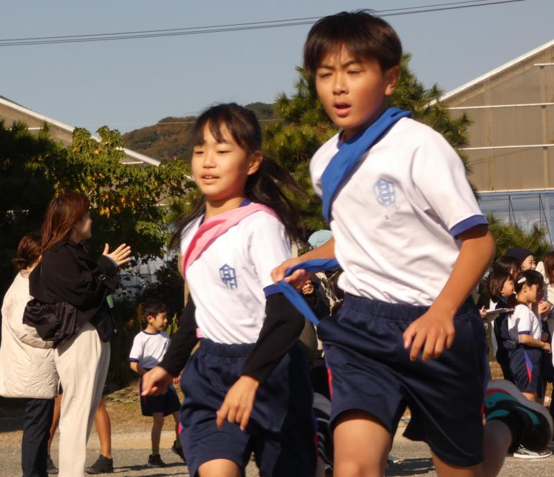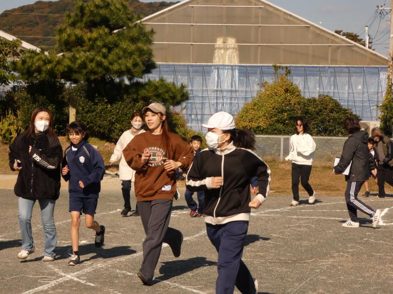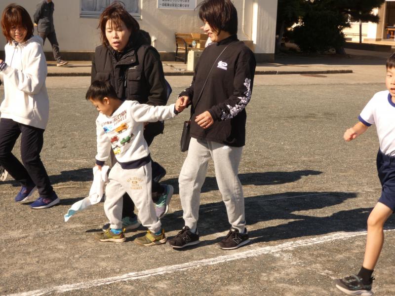準備運動(ダンス)、しゃべじゃんジョギングで親子で走ったあと、いよいよ本番です。