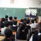 体育館の空調工事がまだ続いているため、3学期始業式もリモート開催でした。式を始めようとしたところ、半数近くの教室で、大型モニターに映像がうまく映らないハプニングがありました。そのため、映像がつながった教室へ椅子をもって移動して式を行うことになりました。