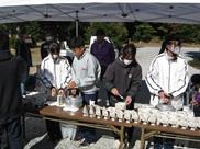 今年は、海岸清掃、地引網が終わった後、コミュニティ・スクールの活動として、防災対策課や田原東部コミュニティ協議会の方とボランティアで募った生徒たちが一緒になって、津波避難訓練・わかめご飯の炊き出し訓練、ピザ配付を行いました。地域の方と触れ合うことができ、とてもよい機会となりました。