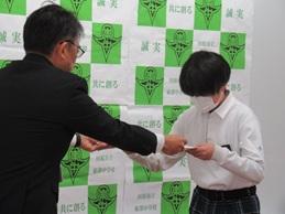式の前に表彰伝達がありました。標語、ポスター、書道、作文、図画作品、WorldClassroomでの表彰でした。部活動だけでなく、さまざまな場面でがんばっています。