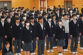 校長先生から各学年の代表者に修了鉦が手渡され、1年生136名、2年生129名がそれぞfれの学年を無事に修了することができました。1年間で皆さんは、大きく成長しました。約2週間の春休みを経て、4月には新学年としてのスタートを切ります。春休みは、健康に安全に過ごしながら、立派な「節」をつくり、新しい決意に満ちた始業式を迎えてください。