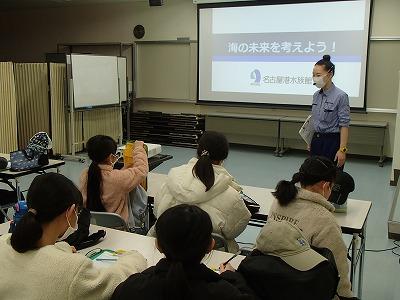 始めに、「海の未来を考えよう」というテーマで、お話を聞きました。海に漂うゴミによって魚やウミガメが危険にさらされていることを教えていただきました。