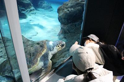 名古屋港水族館では、ウミガメの水槽の砂は、赤羽根海岸の砂を運んでいるそうです。