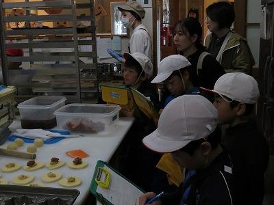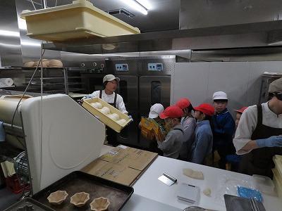 始めに、パンコーナーの見学です。パンを焼くところを見ていると、パンの匂いがして食べたくなりました。