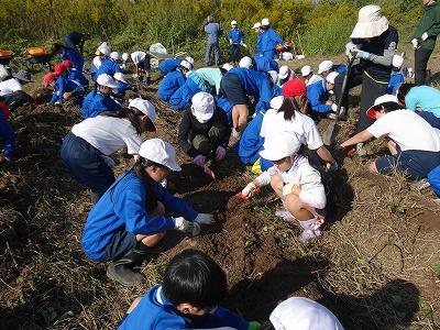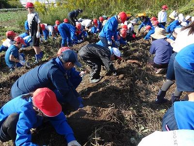 10月27日全校児童で学校園のさつまいも掘りをしました。