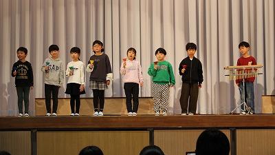 1年生は「元気いっぱい1ねんせい!」(演奏・音読劇)
