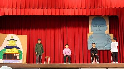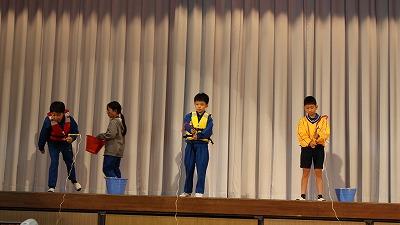 4年生は「若戸の海 〜楽しいよ!でも気をつけて!〜 」(劇・クイズ・合唱)