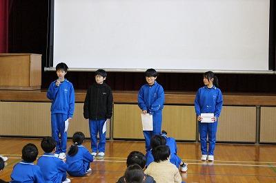 2年生、3年生、6年生の代表児童が、3学期のめあてを発表しました。
